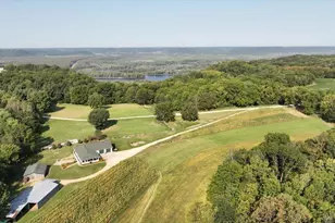 Beautiful 62 Acre farm on a quiet, country, dead-end road above the Mississippi River Valley. This newer home consists of a main level master bedroom with full bath and walkout to back yard deck area. There's a guest bath as well as an open concept kitchen, dining and living area. The lower level contains a kitchen, bedroom, large living area that could be turned into bedrooms as well as a full bathroom, cellar room, utility room and walkout to the back patio area. There's a 3-car attached garage as well as several outbuildings including a pole barn, machine shed, wooded grain bin, and animal shelter. The acreage is about 16 tillable and the rest wooded abundant with wildlife, with 3 permanent deer stands, making this a great hunting property as well.