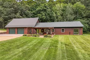 Wowza! Zero Entry - Extremely Efficient, 11 acre Rural Home, but really close to the city of Menomonie - easy access to either north end or south end of town. Extremely quiet setting tucked away in the beautiful hardwood forests of Dunn County. 3 bedrooms 2 1/2 baths, EXCEPTIONAL 2-car attached garage with kitchen and epoxied floors. All living facilities on main floor, great kitchen with island, separate dining area and living room with lots of natural light. Main floor master ensuite, another large bedroom and full bath and on the other end of home is main floor laundry, a terrific loft with space for 3rd bedroom and office or it can be a full fledged office/study/ hobby room. Zero entry garage is gorgeous, has 8 x 10 O.H. doors, epoxied floors and has 2nd kitchen area as well as work bench. Outside is a patio with panoramic views of the pond and surrounding hardwoods. Extremely well cared for, lawns manicured nicely and quiet setting. Wildlife, Songbirds, Stargazing, room for an outbuilding and the list of exterior amenities just grows and grows. Very Special Property!