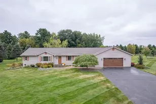 Just minutes from Merrill, this 4 bedroom, 3 bathroom ranch sits on 1.51 acres and offers a perfect blend of indoor comfort and outdoor space. Surrounded by farm fields in the front and a tree-lined perimeter in the back, the property provides both privacy and convenience. The semi-open floor plan features a large kitchen with a peninsula that overlooks the dining area. The living room highlights an oversized front window that fills the space with natural light. The main level includes two guest bedrooms, a full bath, main-floor laundry off of the oversized two car garage, and the primary suite. The primary suite is designed for comfort with serene backyard views, a walk-in closet, double vanity with two linen closets, a jetted tub and shower. The finished lower level extends the living space with a family room, fourth bedroom, third full bath, bonus storage, plus a convenient staircase to the garage, ideal for a private guest or in-law suite with its own entry. Outside there's a fantastic gazebo, patio, fire pit, maintenance-free deck with lighting, and new raised garden beds.