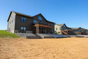 Short Term Rentals are allowed! This home was finished in 2024 and offers many upgrades! 5 bedroom 3 bath home with a gorgeous view from the deck. Large great room with vaulted ceilings. Primary Suite has incredible views of the water, along with full walk-in closet. Large mud room off garage. Lower level has spacious family room/game room along with a second kitchen/wet bar - perfect for your days out enjoying the sandy beach! Large bedroom and bunk room on lower level. Walk out to screened porch and beautifully landscaped beach frontage. Upgraded zoned heating, high end cabinets, second kitchen/wet bar in basement, composite siding, 2.5 car garage, alpha systems in closets and custom blinds. Purchase to use for yourself or invest and use as a rental. Schedule a time to see it today!
