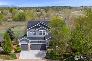 Situated on a quiet cul-de-sac in Erie Commons, this beautifully updated home backs to open space with breathtaking mountain views from Longs Peak to James Peak. Enjoy morning coffee on a peaceful front porch overlooking the cul-de-sac. The bright, open floorplan features a spacious living room with a fireplace, a formal dining room and an updated kitchen with white quartz countertops, new cabinetry, a vast center island, a subway tile backsplash and newer appliances including a gas cooktop. Hickory flooring extends up a curved staircase to the upper level hosting a guest suite and a generous primary suite with a soaking tub and walk-in shower. An unfinished basement offers the potential for personalization. Soak in serene sunsets from a private backyard featuring a patio, hot tub and mature landscaping including maple, apple and lilac trees. With newer lighting, updated laundry/powder room, a private office and a 3-car garage, this home blends comfort, function and Colorado beauty.