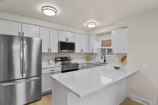 Introducing a beautifully renovated townhome in the sought-after Applewood area, boasting spectacular views of the lake and mountains. Just a short stroll from Maple Grove Park, Coors Reservoir, and the Applewood Golf Course, this charming end-unit is situated in a prime location within the desirable Applewood townhome community. This property has recently undergone an extensive transformation, showcasing exquisite quartz countertops, sleek stainless-steel appliances, brand-new contemporary cabinetry, matte black fixtures and hardware, and elegant luxury vinyl flooring. The home is further enhanced by new carpeting, fresh paint, updated lighting, and modern two-panel doors and baseboards throughout. Recent upgrades include a brand-new 200 Amp electrical panel (installed December 2024), a newer furnace and A/C unit (2019), a hot water heater (2021), and a newly installed radon mitigation system (January 2025). Spanning three distinct levels, this home provides ample space for everyone to discover their own retreat or come together in the expansive great room, where natural light floods in through numerous windows, creating a warm and inviting ambiance. Enjoy stunning lake views from the spacious great room, while the second-floor bedrooms and the primary bedroom's private balcony offer breathtaking vistas of both the lake and mountains. Additional highlights include a two-car garage, a charming deck, and a lovely courtyard. This unbeatable location places you directly across from Maple Grove Park, just steps from the Applewood Golf Course, with quick access to trails leading to South Table Mountain. You'll also be conveniently near the new Intermountain Health Lutheran Hospital, Lifetime Fitness, shopping options, and easy access to downtown Golden and I-70.