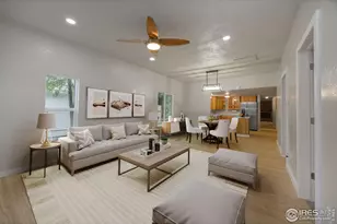 Back on the market at a new $430,000 price, this updated 4-bedroom, 2-bath Downtown Loveland home blends 1930s charm with modern renovations and exceptional convenience to live the Colorado dream lifestyle. Located just blocks from restaurants, breweries, shops, The Foundry, parks, and trails, this move-in-ready bungalow features a bright open floorplan with fresh interior paint, new laminate flooring and carpet, modern lighting, remote-controlled ceiling fans, and updated fixtures. The spacious living, dining, and kitchen areas are great for entertaining, and the remodeled kitchen includes granite countertops, a functional island, and newer stainless steel appliances including a gas range, microwave, dishwasher, disposal, and double-door refrigerator with ice maker. Both bathrooms have been stylishly updated-one with a tub/shower combo and the other with a walk-in shower. Four versatile bedrooms offer space for an office, guests, or hobbies, and the cozy great room with fireplace adds a second living area. Situated on a rare 0.21-acre oversized lot, the fully fenced backyard includes updated fencing near the patio and a new 16' wide alley-access gate ideal for RV, boat, or trailer parking. An 11'x11' enclosed storage shed and a detached 3-bay carport/outbuilding both feature new metal roof and siding (2025). Additional updates include a sewer repair (approx. 2022) and a new permitted roof with warranty (Oct 2025). With no HOA, no metro district, and R3e zoning offering added potential-including the opportunity to explore ADU possibilities-this property provides flexibility rarely found in town. Loveland also allows keeping chickens, ducks, geese, other domesticated fowl, and even dwarf goats with no permits required when properly maintained per Chap. 6.28.010. A unique lifestyle opportunity and strong investment choice, this home is ready to impress. Schedule your showing today!
