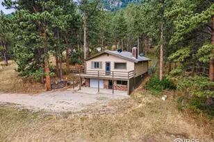 Ranch style home in serene Pinewood Springs with a walk-out lower level and mountain views. On the main level, the south-facing bedroom features a sliding glass door that opens to the nearly two-acre tree-studded property. Another bedroom on the main level provides additional living space, along with the kitchen that is connected to the family room and living room to create an open flow. Due to the unique and favorable geography of the lot, the lower level enjoys a walk-out separate entrance to the front part of the property which creates a separate living area. Use this as a separate apartment with rental potential, multi-generational living, or just the lower half of your home. The lower level is complete with a laundry room, bathroom, another bedroom, and the great room that has a separate entrance and front patio. Seller is willing to help with the replacement of the roof and septic tank with the right offer, or is also willing to offer a better purchase price with an as-is offer. Just twenty minutes to downtown Estes Park, ten to Lyons, or fifty feet to National Forest, this is mountain living in Pinewood Springs.