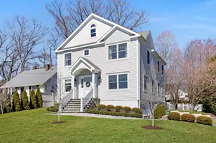 Walk to train and town from this 4-bedroom sun filled home with soaring 9 foot ceilings and hardwood floors throughout. The generous entry foyer welcomes you to a spacious family room with beautiful moldings, an electric fireplace and sunlight galore! The formal dining room with gorgeous, detailed molding is great for holiday gatherings and is adjacent to the gourmet kitchen with a large island, lots of storage and access to the terrace and yard behind. The 4th bedroom/office is conveniently located on the first floor with a newly renovated full bath. Up the stairs the gracious primary suite boasts a large walk-in closet and a huge spa bath with soaking tub, private shower and double vanity. 2 additional sunny large bedrooms each with large custom-fitted closets and a lovely full bath complete the second floor. The lower level features a separate laundry room and a large rec room for active play and access to outdoors. A fully fenced back yard includes a large terrace for entertaining and a flat private yard for pooch and play. Walk to train/town in minutes. Convenient to everything, this amazing home with soaring ceilings won't last! Completely rebuilt in 2009