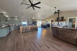 This 2024-built country estate offers the perfect blend of modern open-concept living & expansive outdoor freedom. Situated on 9+ acres of perimeter-fenced land just 22 miles from downtown Graham, this property is reachable via a blacktop road leading directly to the front gate. Inside, the home shines with luxury vinyl plank flooring, carpet in bedrooms, designer light fixtures, and a layout designed for entertaining. Picture a massive kitchen island with a breakfast bar featuring unique accent lighting, complemented by gorgeous cabinetry and wood butcher block countertops. Serious hosts will love the butler's pantry that features ample built-in cabinetry for organized storage alongside extensive open shelving specifically designed for easy access to canned goods & an added bonus is the extra deep sink. The dining area features a dedicated coffee & wine bar with a built-in cooler & French doors opening to the backyard. Imagine stepping into a huge, welcoming living room where warmth from the wood burning stove seems to wrap around you the moment you walk in. The ceilings stretch high overhead, giving the space an open, airy feel. The split-bedroom floor plan ensures privacy, with walk-in closets, built-in electric fireplaces & lighted ceiling fans in every room. The oversized laundry room is a functional dream, offering a utility sink, space for a deep freeze, & room for a desk to use as a home office. For guests, a separate cabin with a half-bath provides a private retreat. Outdoor & technical highlights include a 140-foot deep private water well, fiber optic internet is also available. Above-ground pool for entertaining & the acreage includes maple and fig trees. All appliances convey, including the refrigerator, washer, & dryer. The master bath is 15x7 & currently unfinished, but the seller is negotiable to complete it. With a durable composite roof, cement board siding on the exterior, & ample parking, this 2024 gem features an electric car charging station.