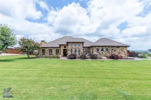 Beautiful custom-built 4-bedroom, 2-bath home located in the desirable Sandstone subdivision within Jim Ned ISD. Situated on a spacious ½-acre lot, this home features a striking stone and stucco exterior with gutters and impressive curb appeal. Inside, you'll find engineered hardwood flooring in the main living areas, tile in the bathrooms, and carpet in the bedrooms. The open floor plan includes a living area with cedar beams and a cozy wood-burning fireplace. The kitchen is well-appointed with stainless steel appliances, granite countertops throughout, and abundant cabinetry, ideal for everyday living and entertaining. The primary suite offers a luxurious retreat with dual vanities, a jetted tub, a separate tiled shower, and a spacious walk-in closet. The guest wing includes three bedrooms and a well-designed guest bathroom with dual sinks and a tiled tub-shower combo, providing comfort and privacy for family or visitors. Additional highlights include plantation shutters, a covered back porch, sprinkler systems in the front and back yards, and a backyard workshop with electricity and a mini-split unit, perfect for year-round use. This home combines quality craftsmanship with thoughtful design.