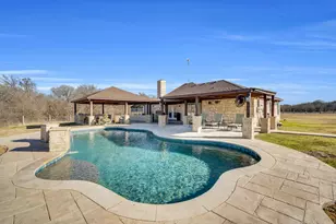 Set on 13 picturesque acres, this beautiful open concept rock home blends rustic charm with modern comfort. The property is fully cross fenced and features a stocked pond-perfect for fishing, relaxing, or taking in the sunset. A brand new two stall barn is ready for your cows or horses. Outdoor living is truly exceptional with a sparkling saltwater pool featuring new resurfacing and water feature. Entertain with ease on the large stamped concrete back patio and new fully equipped outdoor kitchen complete with a Blackstone grill, refrigerator, and sink. A newly added stone patio with propane fire pit offers the perfect spot for cozy nights under the stars. Additional highlights include an automatic iron gate for privacy, a large carport, and plenty of room to roam. This exceptional property has been loved and taken care of and offers the best of country living!