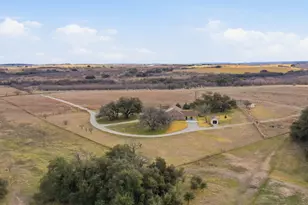 Welcome to your own slice of country calm without giving up convenience. This beautifully crafted rock and brick home offers 5 large bedrooms, 3.5 baths, and 3,553 sq ft with a layout made for real life. With 2 spacious living areas one upstairs and one down, a formal dining, eat in kitchen, a large laundry room, mudroom and overall space to spread out in every direction. Stained concrete floors add a clean, durable finish, while the gas fireplace, and detailed wood accents add thoughtful character throughout bringing warmth and comfort. The kitchen is the heart of the home with beautiful cabinetry, new countertops, and an open-concept flow overlooking the main living area-perfect for hosting, holidays, or everyday family time. New hvac unit installed in 2025. Step outside to enjoy both covered front and back patios, overlooking the well maintained landscaped yard with sprinkler system and wide-open views that make you want to slow down and stay awhile. Set on 57 ag exempt fully fenced acres, the land is as impressive as the home. Featuring a large, well-fed pond with fish, great usable pasture space for cattle, horses, or any of your farm friendly friends on a peaceful setting you'll appreciate the moment you pull in. Tucked just minutes from town and located off a paved road, this property offers privacy, space, and practicality-all in one. Check out the lay out in the photos!!