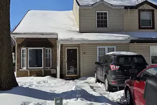4 bedroom, 1 1/2 bath twin home on large, fenced corner lot convenient to major routes, shopping and dining! Spacious light filled great room with soaring vaulted ceilings and laminate flooring that flows through to the dining room and kitchen. New composite deck off the back of the home and patio of the side. Garage converted to a spacious first floor bedroom. Updated roof and HVAC, all appliances included. Home is priced to reflect the need for some cosmetic updates. Hurry to schedule your private tour today!