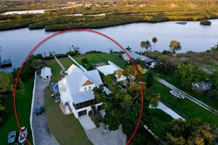 Welcome to this stunning 3-story oasis, perfectly perched on .73 acres, overlooking serene nature islands and offering breathtaking sunrises. This exceptional property features a boat dock with a 10,000-pound lift and a floating jet ski dock, making it a water lover's paradise. Enjoy a lagoon-style heated pool with a spa and a dedicated storage house for pool toys and boat equipment-all without HOA or CDD fees! The meticulously designed interior boasts 9-foot ceilings throughout, with a ground level featuring a completely surrounded concrete block room that can have many uses such as workshop, storage or for safety in case of storms. Don't forget a sauna and a spacious 3-car garage and a home fitness area. Step onto the expansive front and rear decks on the second level, complete with a barbeque deck hooked up to a 500-gallon propane tank that fuels one of two cozy fire pits. The open floor plan highlights a modern kitchen with white shaker soft-close cabinets and a stunning granite island, flowing seamlessly into the living and dining areas. The primary bedroom offers custom wood moldings, an en-suite bathroom with a luxurious 6x5 walk-in shower, double sinks, and quartz countertops. The third floor hosts two additional bedrooms, each with walk-in closets-one also featuring a bonus space perfect for an office or nursery. Additional highlights include all out-swing doors, hurricane impact windows, dual AC units, a beautiful iron and wood staircase, and thoughtfully designed outdoor spaces with cypress ceilings. Spot dolphins, manatees, and various bird species right from your home! With a whole house generator and every inch of this home crafted with intention, this property is a true testament to luxurious living. Don't miss out on this unparalleled waterfront gem! NOTE: The stairs in this home have been constructed to accommodate stair lifts, both sets were built 4 ft wide with raised railings (stairs from garage to main level are already wired for lift in case of necessity).