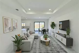 Step into stylish, low-maintenance living in this thoughtfully designed home situated in a sought-after neighborhood. The bright and airy open layout is enhanced by soaring ceilings and abundant natural light, creating an inviting space perfect for both relaxing and entertaining. With 3 bedrooms and 2 bathrooms arranged in a split floor plan, privacy and comfort are seamlessly combined. The contemporary kitchen stands out with elegant quartz countertops, modern cabinetry, and stainless steel appliances, flowing effortlessly into the main living areas. The spacious primary suite serves as a private retreat, complete with a walk-in closet, dual sinks, and a sleek glass-enclosed shower. Throughout the home, tile flooring adds durability and style, while impact windows provide peace of mind. Enjoy outdoor living in the covered patio overlooking a fully fenced backyard-ideal for gatherings or quiet evenings. A two-car garage, paved driveway, and in-unit washer and dryer add everyday convenience. Perfectly positioned close to shopping, dining, and local amenities, this home offers both comfort and accessibility. Don't miss the opportunity to make it yours-schedule a showing today!