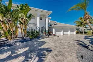 Completely remodeled and move-in ready, this stunning two-story direct Gulf access home sits on a prime intersection of canals in the highly desirable Palaco Grande neighborhood. With western rear exposure, you'll enjoy spectacular sunset views every evening and a quick 2-minute boat ride to the Caloosahatchee River. Offering over 3,600 square feet of living space, the home was designed around open, airy waterfront living. The high-end kitchen is the heart of the home, featuring built-in KitchenAid appliances, a 36-inch cooktop, built-in fridge, and beautiful exotic granite. Water views from both the kitchen and living room create a seamless connection to the outdoors and make entertaining effortless. The first floor includes three spacious bedrooms with engineered wood flooring, plus a large family room currently set up as a game room. A stylish bar area with wine cooler and beverage center adds the perfect touch for hosting friends and family. Dual AC systems (2020) and a wired surround sound system in the living area and lanai provide comfort and ambiance throughout. Upstairs feels like a private retreat, with a loft, oversized balcony, and an impressive master suite. The spa-like bathroom features a freestanding tub, double vanities with makeup area, custom cabinetry, chandelier lighting, and a walk-in shower with multiple shower heads. A huge walk-in closet completes the space. Step outside and the home truly shines. The heated pool (electric and solar) is surrounded by a large paved deck and lanai with plenty of room to relax. The picture-window cage with super screen keeps views wide open, while sealed pavers extend beyond the enclosure. Lush tropical landscaping - including Sylvester palms and screw palms - paired with landscape lighting creates a beautiful evening atmosphere. For boaters, the dock is exceptional: PVC decking, captain's walk, stainless steel rigging, solar piling cap lights, and a 16,000 lb lift with canopy. A new seawall was installed in 2019 during the renovation. Even better, the owner's flood policy is assumable at just $2,600 per year. This home combines modern updates, unbeatable boating access, and resort-style outdoor living - a true waterfront lifestyle property.