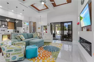 Captivating Cape Coral Stunner! A Luxurious Modern Retreat. Step into unparalleled luxury with this breathtaking masterpiece, designed for the most discerning buyer. This stunning home blends modern elegance with sophisticated details throughout, offering a lifestyle of comfort and refinement. The heart of the home features a chef-inspired kitchen, showcasing luxurious two-tone smokey gray and natural wood cabinetry paired with sleek white quartz countertops. The showstopping double waterfall kitchen island serves as the perfect centerpiece, surrounded by upgraded stainless steel appliances, including a double oven. A walk-in glass wine cellar adds a touch of elegance, while wood-accented coffered ceilings and a decorative feature wall with niches create an inviting atmosphere. The open great room concept living area is accentuated by a cozy electric fireplace and 32" white porcelain tile flooring, creating a modern yet timeless feel. The bathrooms are equally impressive, featuring onyx quartz tile to the ceiling in the seamless showers, smokey gray floating vanities, and a luxurious free-standing tub in the master bath - perfect for a spa-like retreat. Upgraded lighting throughout highlights every meticulously designed detail, adding a warm and contemporary ambiance to every room. Step outside to your private outdoor oasis, complete with a fully equipped outdoor kitchen featuring a grill, wine cooler, and sink - ideal for entertaining. The sparkling pool is complemented by two water fountains, creating a serene and relaxing atmosphere. Enjoy the Florida sunshine while lounging on the paver pool deck, or rinse off in the convenient outdoor shower. An additional paver fire pit area offers a cozy outdoor space for evenings under the stars. The home is as practical as it is beautiful, with an epoxy-coated garage floor, power garage screens for privacy and convenience, a concrete tile roof, and an aluminum fenced yard providing both privacy and curb appeal. The paver driveway completes the exterior, offering a perfect first impression. This exceptional property delivers the perfect blend of modern luxury and outdoor living, designed for those who appreciate the finest details. Easy access to shopping, dining, major roads, and conveniences. Don't miss the opportunity to make this extraordinary home yours!