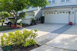 Beautifully upgraded 3-bedroom, 2.5-bath townhouse in Brookfield at Estancia, located in a non-flood zone in Clearwater. This move-in ready home features porcelain tile flooring, hurricane-impact windows and doors, and a modern kitchen with stainless steel appliances, granite countertops, pull-out shelving, and a Kohler sensor faucet. The spacious 2-car garage includes extensive storage, EV-ready 220V outlet, water filtration system, new water heater, and smart garage opener with camera. Upstairs offers engineered wood floors, new HVAC with Nest thermostat and UV air purification, and a large primary suite with custom walk-in closet and upgraded bath featuring dual vanities, soaking tub, and walk-in shower. Two additional bedrooms and a flexible office/den complete the home. Enjoy a private patio with irrigation system and low-maintenance living with HOA covering roof, exterior maintenance, landscaping, pest control, and resort-style amenities including pools, spa, tennis/pickleball courts, and clubhouse.