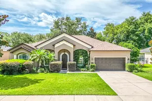 Welcome to this beautiful home in a quaint neighborhood just off the beaten path in beautiful Pillar's Ridge. From its curved front door to its beautiful interior with soaring ceilings to the mature trees in the back yard this home is a stunner! This home features 3 Bedrooms and 3 Full Baths plus a formal Dining Room, Living room and an Office. The Kitchen has a large breakfast bar, Granite Counters, Stainless Steel Appliances and Double ovens with tons of Cabinet space. Master Bedroom is Huge with a massive Walk-in closet. The Master Bath has a Garden Tub, Separate Shower and Double Sinks. Both other Bedrooms are spacious, with one of them having its own full bathroom. Enjoy your morning coffee on the covered and screened back porch overlooking the beautiful oaks and peek-a-boo view of the lake! Home has been fully updated! New roof in 2024, New LVP flooring throughout. New tankless hot water heater. Interior painted and all lighting updated in 2023. This home is located just minutes from shopping, restaurants, parks, minutes from a public boat dock and just 25 min away from Disney! This home is a charmer and won't last long!!
