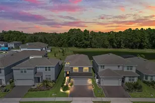 Prepare to fall in love with this better-than-new, 5 bedroom, 3 bathroom home with no rear neighbor and a conservation view. This location is hard to beat as it's close to the parks, schools, neighboring towns, and shopping yet in a close-knit gated community that has a pool, splash pad, dog park, walking trail, personal fitness center, and kayak launch. In their year of ownership, the owners left no surface untouched with luxury and functionality. Upon pulling up to the home you'll notice the extended paver driveway, pristine landscaping, and stone work. Step inside and you'll immediately know this is not just another house, but the place you want to call home. To the right of the entryway you have the perfect spot for your wine fridge and the entrance to the immaculately kept garage with epoxy flooring. Walk straight and you'll enter the open kitchen, dining, and living space perfect for entertaining or for cozy night on the couch. The accent walls in both the living room and dining room add both luxury and class making it so you'll be proud to host any event. The gourmet kitchen is a chef's dream with a large island, high end appliances, under lighting, and ample cabinet space. Don't cook alone, though! Right outside in your extended paver, screened-in lanai, you'll find the pre-plumbing for your very own summer kitchen. Enjoy the wrought-iron fenced in yard, view of the pond, and your favorite tunes as they play through the built in surround sound speakers in the family room AND lanai. Downstairs you also have a full bath and bedroom with built-in closet perfect for guests, in-laws, a playroom, or home office. Heading upstairs you'll find a large den, full bath, and three generously sized bedrooms before heading into the owner's retreat with ensuite bathroom, a custom master closet, and view of the backyard. As if this all weren't enough, the custom paint jobs, accents walls, tile work, lighting in every room, and woodwork throughout the home are sure to leave a lasting impression and make you feel like you're living in your real-life dream home. The home is not only beautiful but functional and secure. With a security system, cameras, wifi extenders, upgraded HVAC unit, whole home salt water purification system, and smart home features such as keyless entry and thermostat the only thing you'll be wanting, is to write an offer!