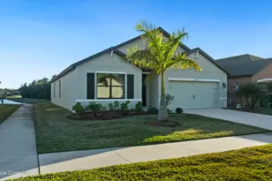 Relax on your covered lanai with serene waterfront views and effortless Florida living, or take the nearby walking trail that leads directly to the community pool and playground. The spacious kitchen is designed for both everyday living and entertaining, featuring a large center island, walk-in pantry, and seamless flow into the dining and living areas. The private owner's suite offers a generous layout, a double-vanity bath, and an oversized walk-in closet. Three additional bedrooms and a full guest bath provide plenty of space and flexibility. Ceiling fans throughout the bedrooms and living area add comfort, while the garage includes a built-in storage system for optimal organization. The home is pre-wired for smart technology and a security system. Outside, the lawn showcases new sod and an economical irrigation system powered by its own well. Adamson Creek offers convenient access to I-95, Cape Canaveral, and local beaches, and is 30 minutes from Orlando International Airport.