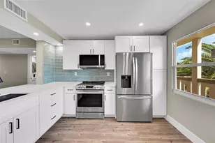 PRICE DROP. FOR YOUR DISCRIMINATE BUYER WHO WANTS OPEN, AIRY, & BRIGHT, LETTING IN THE FRESH AIR, THIS BEAUTIFULLY REDESIGNED AND CRAFTED CONDO. It is a stunning transformation, and you will appreciate the impressive craftsmanship. The kitchen boasts high-end Carrera QUARTZ countertops, White Shaker SOLID WOOD custom cabinets, all Brand NEW NEVER USE-Stainless-Steel top-of-line appliances, and a glass top stove/oven. IMPACT WINDOWS IN THE KITCHEN & GUEST BEDROOM. All SMOOTH CEILINGS dropped 2"with drop lights-custom CLOSETS. Renovated bathrooms are of a high standard, featuring beautiful vanities and SHOWERS ONLY in the BOTH BATHROOMS. There are all NEW ELECTRICAL SOCKETS and acrylic sliders on the patio. All Done With Permits. All assessments have been paid. park in 137