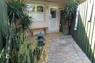 Beautifully updated studio in gated entry complex w/courtyard pool right outside your door. Both front & rear patios are fenced & private which makes for great outside living spaces for a total of 1,012 s.f. Marble floors thru-out & plantation shutter on glass doors & front picture window. Impact windows & doors. E-range & microwave/convection oven in one. AC about 3.5 yrs old. 2 parking spaces in tandem, upgraded electrical & laundry room just steps away. Bar stools in kitchen, Lg TV & wall mounted cabinet below stay. 1 pet Ok 40 lbs & under. HOA approval required. Arts District, micro brewery, restaurants & shopping near by & Wilton Dr. is about 2 miles away...