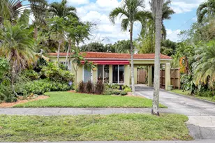 Very sweet 2/2 with a 6 ft. lighted pool. Lush landscaping also with lightening, many fruit trees, pinapple, mango, guava, lychee, banana, bamboo, star fruit, lemon tree. New roof in 2012, new a/c 2013, Impact windows and doors, ADT security system, stainless appliances, new Fisher & Paykel frig. under warranty, 2 oven Kenmore stove, Bosh dishwasher, garbage disposal, wood and Mexican tile floors, french doors in both bedrooms, 2 hug walk in closets, large laundry room. Entrance to kitchen from the carport, lots of storage in kitchen (additional in soffits). This home is close to shopping, downtown, 195, 595, Las Olas. In a quitet tree lined neighborhood.