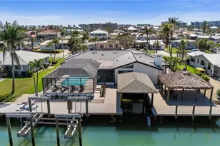 FULLY FURNISHED + MOVE-IN READY!!!*Dam Easy Water Barriers have been installed. Welcome to your BOATER'S PARADISE-a stunning FOUR Bed / THREE BATH Canal-front pool home just a short walk to the Sandy Beach! Nestled on a spacious 90 ft x 125 ft lot with a charming paved circle driveway. This home has been fully renovated to perfection with brand NEW everything- NEW Refinished Pool, NEW two foot Raised seawall, NEW deck, NEW AC, NEW water heater, NEW electric, NEW pool equipment and NEW plumbing-making it feel like a fresh, modern retreat from the moment you step inside! For the boating enthusiast, a NEW 40,000# boat lift rated for up to a 45-foot boat that includes a canopy, complete with electric and water for ultimate convenience. Step inside to discover a gorgeous, open-concept floor plan that seamlessly blends style and functionality. New Kitchen cabinets, NEW stainless steel appliances, NEW extra large island as well as all NEW impact Windows and Sliders, and all NEW interior doors. The large island creates the perfect space for preparing meals and gathering with loved ones. The kitchen flows effortlessly into the spacious Florida room. Every detail is thoughtfully designed, including impact-resistant windows and doors, with elegant plantation shutters. The master bedroom is a true retreat, featuring a spacious walk-in closet and a fully renovated, spa-like ensuite bathroom. The guest bathrooms have also been completely transformed, offering a sleek dual vanity in the spare bath and the second guest bathroom offers the convenience of a Pool bath. The garage is equally impressive, with a NEW door and freshly painted floors. Also added are the stored Dam Easy Flood Barriers. When you step outside, your sliders all open to reveal an expansive outdoor living area, designed for relaxation and entertaining. Enjoy the NEWLY refinished pool and sauna, NEW pool equipment and a NEW updated brick pavered pool deck. Ready to launch your boat into the direct-access canal to open waters, or simply walk across the street to the beach for a day in the sun. This home offers the best of Fort Myers Beach living, blending comfort, style, and convenience in a truly exceptional location.