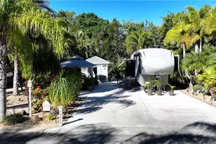 Located in one of the most desirable sections of Cypress Woods RV Resort, Lot D150 is an oversized, beautifully landscaped RV lot offering exceptional privacy and mature tropical surroundings. A large canopy of established palms and a variety of tropical trees create abundant natural shade throughout the day, enhancing both comfort and curb appeal. The thoughtfully designed outdoor space features expanded paver areas and elegant walkways that add character and functionality to the property. A hard-top gazebo provides a comfortable, shaded area ideal for outdoor dining, entertaining, or relaxing. The fully finished accessory building adds valuable convenience and flexibility, making this property well-suited for seasonal enjoyment or full-time RV living. With its prime interior location, lush landscaping, and inviting tropical atmosphere, Lot D150 presents an outstanding opportunity to own in one of Fort Myers' premier gated RV resort communities.