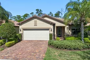 This two-bedroom plus den saltwater pool home in Bridgetown at The Plantation offers over 1,900 square feet of living space with volume ceilings and designer finishes throughout. Upon entry through the hurricane glass led inlet door, tile and luxury vinyl flooring set an elegant atmosphere complemented by earth-tone paint and abundant natural light. Crown molding and tray ceilings add to the refined ambiance. The kitchen serves as a central gathering area, featuring a large granite island, designer pendant lighting, a stylish backsplash, and new appliances installed in 2023-including an LG French Door refrigerator, LG convection oven, and top of the line Bosch dishwasher. All cabinetry is equipped with built-in pullouts for optimal storage. Adjacent to the kitchen is a private coffee bar with pullout drawers, additional cabinetry, professional Marvel beverage refrigerator with drawer, and a walk-in pantry fitted with custom shelving and pullouts. The main living area is spacious and bright due to extra windows and includes a 65 inch Sony Bravia TV with Sonos soundbar for enhanced entertainment. Bedrooms are split for privacy, with the primary suite overlooking the pool and offering a large walk-in shower, built in 55 inch LG TV, and a closet with custom built-ins. Outdoor amenities include lush landscaping, a private preserve, a custom saltwater pool with water feature, a new 55 inch TV with full motion mount to watch while in the pool, and a picture screen lanai cage providing unobstructed views. The garage features plenty of room for a golf cart or additional storage, floor mats for protection, and a remote controlled screened door for maximum airflow and privacy. It houses the whole-house Kinetico water system and a hot water tank installed in 2024. The 18 SEER, quiet Rheem HVAC system with Smart thermostat, also newly installed in 2024, includes an air purifier to keep electric bills low. Comprehensive hurricane protection is provided with accordion shutters and remote controlled Electrical Shutters. Bridgetown's low HOA includes Comcast upgraded cable package and high speed internet. Just minutes away by golf cart or car, the amenity center offers a host of recreational activities: tennis, pickleball, bocce ball, fitness classes, gym workouts, lap swimming, or simply lounging by the pool. This residence offers a perfect blend of luxury, comfort, and resort-style living-welcome home!
