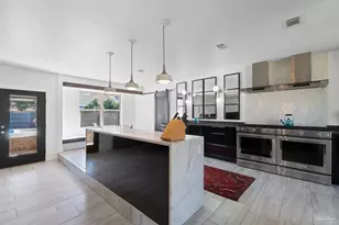 Step into this stunning mid-century modern ranch home in Gulf Breeze, where every detail has been thoughtfully reimagined. This true four-bedroom home has undergone a complete transformation, with walls opened up and spaces redesigned to create an inviting, more open layout. The result is a perfect blend of modern updates and timeless design, with a vintage room divider complete with slate stone flooring in the entryway, multiple hundred-plus year old doors, and a reclaimed wood fireplace mantle among the many amazing touches. More high-quality materials and upgrades continue throughout, including quartzite natural stone countertops, DOUBLE FIVE-BURNER GAS RANGES AND OVENS(!!!), waterfall kitchen island, and upgraded soft close cabinets with dovetail joints in the kitchen and so much more. A beautifully added butler's pantry provides extra storage and workspace, making meal prep and entertaining effortless. The master bathroom has also been completely renovated with a curbless entry shower with bench (Schluter Systems), Kohler Purist Collection fixtures, new shower glass and tile, and too many other updates to list. Most of the home has been rewired and re-plumbed for peace of mind, while natural gas powers the furnace, clothes dryer, hot water heater, and the gas ranges and ovens ensuring efficiency and reliability. A natural gas hookup is also conveniently installed in the backyard, ready for your outdoor grill. The backyard is a true retreat, featuring one of the largest pools in the area, completely renovated in 2022 with a new liner installed in 2023. Surrounding the pool, beautiful pavers, a cozy fire pit, mature trees, lush landscaping, and a drip irrigation system with tree bubblers create a serene outdoor oasis.The curb appeal is just as impressive, with an upgraded Zoysia lawn, new walkway, and refreshed landscaping. This home is a rare find, combining classic mid-century charm with modern conveniences in a prime Gulf Breeze location. Come see it today!