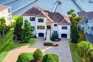 Luxury Waterfront Home located in Tiger Point with Dock, Pool & Elevator | 4BD | 4.5BA | 3 Stories | 100' Waterfront Experience coastal living in this stunning 3-story, 4BR/4.5BA waterfront residence on a 19,400 sq ft lot with 100 ft of pristine shoreline. Boater's paradise with private dock/pier, power & water, 20,000 lb lift (2023), new seawall (2020), and Thruflow decking. Southern exposure offers serene views and beautiful natural light. Heated saltwater pool (new heater, pump, filter, salt water generator in 2024) is screened-in and perfect for year-round enjoyment. Interior features include 10' ceilings, elegant millwork, marble fireplace, travertine/wood/tile flooring, and fresh paint inside & out (2024). Gourmet kitchen boasts Viking appliances, Bosch dishwasher, granite counters, mahogany cabinetry, and a custom island. Primary suite on main level with balcony, dual vanities, jetted tub, frameless shower, and on-demand hot water. Elevator services all floors. Upstairs guest quarters include 3 bedrooms (2 waterfront), and a Jack & Jill bath. Additional office/flex room with full bath could serve as 5th bedroom. Garage includes gym, workshop w/ 220V dust collection, built-in storage, and (2) Tesla chargers. Geothermal HVAC, tinted thermal windows, generator-ready setup, and centralized scent diffuser enhance comfort and efficiency. Located just 130 yards from the 7th tee at Tiger Point Golf Club. Shown to qualified buyers only. Virtual staging used in select photos.