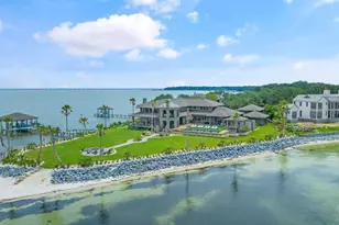 Introducing an unparalleled waterfront sanctuary in Gulf Breeze, Florida! Situated on a coveted western-facing tip lot, this luxurious estate offers ultimate privacy and opulence. With over 12,000 square feet of living space and 1000 feet of water frontage, this home epitomizes waterfront luxury. On the lower level, you'll find a luxurious home theater designed for ultimate cinematic enjoyment. Nearby, a beautifully appointed bedroom suite and a spa-like bathroom offer a serene retreat. The sophisticated office provides a perfect workspace, while the well-equipped gym supports your fitness goals. The expansive great room, flooded with natural light, showcases stunning views of the water and the meticulously maintained putting green, creating a perfect setting for relaxation and entertaining. Marvel at the panoramic 300° views of Pensacola Bay from every angle of the residence. With breathtaking water views, the primary suite features a massive walk-in closet and a spa-like ensuite with both indoor and outdoor showers for ultimate privacy. A built-in espresso machine adds luxury and convenience, creating a serene retreat that blends comfort, elegance, and tranquility. Outdoor enthusiasts will delight in the array of amenities, including a putting green, underground trampoline, boat and jet ski lift, private beach, and upgraded landscaping. Say goodbye to pesky bugs with the underground mosquito mister while you enjoy the saltwater pool and spa overlooking the serene waters. Entertain with ease in the outdoor kitchen, perfectly positioned to take advantage of the breathtaking views. A detached apartment provides additional living space, complete with a full kitchen, bath, bedroom, washer, dryer and balcony, ideal for guests or extended family. This one-of-a-kind home offers a rare opportunity to experience waterfront living at its finest. Embrace the Gulf Breeze lifestyle in this exquisite retreat, where luxury meets tranquility.