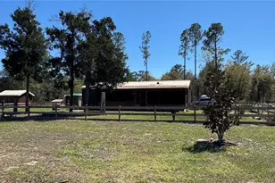 Hello to peace and quiet. Enjoy this 2 Bedroom 2 full bath on 2 acres. Located just 2 minutes from 589 turnpike and 1 hour to Tampa. the 2 acres are separate lots that are fenced and crossed fenced. Primary bedroom is set with 4' handicap door and walk in shower and full convenient linen closet. Kitchen is open concept to living and dining space and feature oversized customer wood countertop bar top. Owners entry has full washer and dryer and large custom pantry cabinets. Bedroom 2 is oversized do to conversion from 3 bedrooms. Extra space in room Can be used for remote work, play area or reading space. Vaulted ceilings open up to living room for that convenient open concept. Florida Room is a fantastic screened outdoor space with two separate seating areas, where you can enjoy the beautiful morning and evening Florida weather. Let step outside to take in the mature landscaping and fenced yard nice done with corral boards and wire fence. Large outdoor paver space for those grilling nights and extra entertaining space. Garden green house 9 x8, ready to make your own. For the yard equipment step into the stout 16 x12 building with 5' doors and ramp for easy access to shop. separately wired electric box, 3/4" PT plywood floors, built in shelving, 10' high peak ceiling, Master Rid metal siding and roofing. One acre lot is a blank slate to make your own and/or extend your private oasis. Make your appointment today for your private viewing.