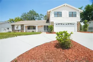 Welcome to this 4 bedroom 3 bathroom 2 car garage INDOOR POOL HOME in the desirable community of Beacon Woods. With a nicely landscaped front elevation, a circular driveway allowing extra parking you enter the home through the front double door entry. Entering the home to you left is the spacious living room, dining room combination with a set of sliders to the indoor swimming pool and back yard. Continuing to the left is the primary bedroom with ensuite bathroom and walk in closet. This bedroom also has a set of sliders out to the pool area. Continuing to the kitchen you will find a light and bright space with 2 sets of slider windows for multiple pass thrus. White cabinetry, glass tile backsplash and stainless steel appliances. Next to the kitchen is a family room and a third set of sliders to the pool area. You will find the second bedroom and bathroom just beyond. There are linen and storage closets in this past of the home. Here you will find the garage entry and a set of stairs to the 3rd and 4 th bedroom. The 3rd bathroom is upstairs and has a large jetted soaking tub, newer vanity and large linen closet. Finally back to the fully enclosed indoor pool! Lined with sliding glass windows that you can open to allow a fresh breeze or close the windows and enjoy year round pool use. There is a large under roof lanai area that you can enjoy dining in, and a huge deck that you can set up your poolside furniture, that is great for entertaining friends and family or keep it all to yourself. There is an additional second screened lanai an the home come with a Huge back yard with rear privacy. The AC is New in 2025. You have an updated 200 amp electrical panel. The pool is also HEATED! Beacon Woods is a fantastic community with a Golf course, clubhouse, tennis and pickelball and basketball courts. An active social scene with dances at the clubhouse. Community pool and so much more. Close to all amenities such as shopping both grocery and retail, restaurants, library and hospitals with in minutes drive. Also close to SunWest Beach and park and 45 minutes to Tampa International airport.