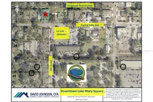 BIG PRICE REDUCTION!!! Rare commercially zoned lot in downtown Lake Mary square connected to the vibrant shopping and dining district! Directly adjacent to Central Park at City Hall, downtown shops and restaurants, and walking distance to Lake Mary Sunrail Station. Property is zoned "DC" - Downtown Centre - Refer to chapter 154.67 in the Code of Ordinances. Allows for retail, office, restaurants, possible 2-story Live/Work opportunity. Sewer and water hooked up to residence. Micro retail development with salon space under construction on the southeast corner of 4th and Crystal Lake Ave, townhome projects proposed one block away on Wilbur Ave. City of Lake Mary has approved front parking on Crystal Lake and there is paved public parking on the corner and across the street. Located near City Hall, many great dining places, shopping, I-4, Lake Mary Blvd., and 417. Lots of exposure for your business and great foot traffic. Value is in the land. Similar commercial lot now under construction on the corner sold for $899,000!