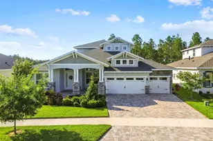 Live in Luxury on over a quarter acre in this 5 bed, 4 bath, den, PLUS 2 large bonus room custom built home in the coveted community of Bexley! Beautiful craftsman exterior features custom stonework columns. Walk up the paved walkway lined with gorgeous landscaping complete with lighting to find your very own massive front porch perfect for beautiful summer nights. Enter the front door to find an expansive open staircase leading up to your own private guest suite featuring a huge loft, 2 bedrooms, full bath and upper terrace showcasing the private water and conservation views in your backyard. The first floor allows for full downstairs luxury living with 12 ft coffered and tray ceilings, hardwood floors, and a speaker system throughout! Retreat to the master wing which features its own temperature control. The massive master bath will give you a truly spa-like experience featuring a vast floor to ceiling tiled shower behind a glass enclosure, dual shower heads, built shower seat, wall-to-wall vanity with dual sinks, and natural lighting. Two separate walk in closets flank the hall that leads you into your own private master suite complete with French doors that open to the lanai and 3 full length windows showcasing your private water and conservation views. In the main area of the house, the open floor plan allows you access to a formal dining room, living room, breakfast nook and kitchen. The kitchen is a chef's dream and entertainer's delight featuring: Built in stainless steel whirlpool appliances, large gas range, pot filler, spacious farmhouse sink, expansive marble style quartz kitchen island with custom edge, butler's pantry/coffee bar and walk in pantry. Other rooms on the first floor include: private den with glass French doors, two bedrooms adjoined by a Jack n Jill bath and a custom bonus room that leads to a pool bathroom and French door lanai access. Enjoy a large laundry area pre-plumbed and ready for your custom sink, under the stair large storage area, and 3 car garage with 12 ft ceilings and natural light. Outdoor space includes an expansive paver lanai with 3 entrances to the home: French doors to the master and pool bath/bonus room, and large 3 panel glass slider. The view is unbeatable water and conservation and the massive lot can easily accommodate a large pool and deck. Over $300,000 in upgrades! Bexley is the epitome of community with several pools, playgrounds, a game room, and a beautiful clubhouse featuring its very own cafe. Locally, everything you need is at your fingertips; just a short drive away! Located next to 589 and only a short drive to I-75, you can easily access all of Tampa Bay. Schedule your private tour today.