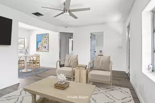 Hard to find modernized and move-in ready classic Florida bungalow. Walk or bike to one of Palm Beach Counties top beaches with easy access to to Manalapan shopping, amenities,intercoastal, the Old Key Lime House and surrounding restaurants and shops. A fully restored 2 bedroom one bath, with modern galley kitchen with contemporary cabinets and quartz countertop. New appliances include washer and dryer and airy screen porch with modular decking that opens up to an expansive 1 1/3 lot with new contemporary back patio. Upgraded to have a modern Florida curb appeal and household features, this updated property has a utility shed, mature hatcher mango, gumbo limbo trees and coveted multifamily deed for development opportunities.