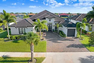 Welcome to this stunning, Lake Front custom-designed estate in the exclusive gated community of St. Andrews Manor - a true one-of-a-kind home with a unique elevation and floor plan unlike any other in the neighborhood. This 4-bedroom, 3-bath residence also includes a dedicated study, spacious bonus room, elegant formal dining area, and a grand open-concept living space centered around a custom electric fireplace with built-in shelving and cabinetry. The chef's kitchen is a showstopper, featuring full upper cabinetry, a massive hidden walk-in pantry, and upgraded LED recessed lighting throughout. Additional highlights include an extra-large walk-in storage closet, automatic lighting in hallways, laundry, pantry, and master closet, timer switches for outdoor lighting, and full tile to the ceiling in all bathrooms. Gorgeous custom wood flooring runs throughout the bedrooms, matched by recessed tray ceilings in the foyer, dining, and entertainment rooms. Smart home features abound, with app-controlled garage doors, Ring doorbell, Generac generator with automatic switch, pool equipment, and porch lighting. Step outside to a resort-style retreat with a screened-in pool area featuring two waterfalls, stone finish, gas pool heater, 20/20 bug screen, and upgraded pool finish. The oversized back porch is perfect for entertaining, with custom weatherproof cabinetry and a gas fireplace surrounded by beautiful stonework. The paver driveway and patio have been recently sealed, and the property is beautifully landscaped with mature greenery, rock mulching, decorative edging, and clay pottery accents. This home also includes a full-house gutter system, custom hurricane shutters, R-30 blown-in insulation in the garage and porch ceilings, and abundant storage throughout. The double-car garage includes a dedicated 30-amp EV charging outlet and an independent 15-amp non-GFCI circuit, ideal for a refrigerator or freezer, while the separate one-car garage features a convenient utility sink. Lovingly maintained by its original owner and custom-painted after completion, this luxurious and meticulously upgraded home is truly turn-key and ready to impress.