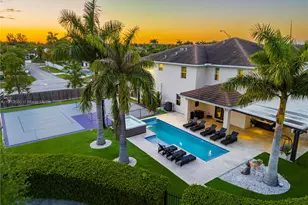 Step into this stunning two-story, move-in ready 8-bedroom, 5-bath modern home designed for comfort and connection. The chef's kitchen flows beautifully into spacious living and gathering areas, perfect for hosting and everyday living. Outside, enjoy a gorgeous backyard oasis featuring a basketball court, sparkling pool, cozy fireplace lounge, and plenty of open green space for play and relaxation. A rare blend of luxury, warmth, and room to grow.