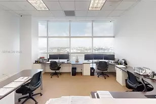 Corner Office Fully furnished 383 sq ft SHARED SPACE of 2124 sq ft. Up to 6 workstation areas 20' x 19' west facing window desks. Plus usage of conference room, private lobby waiting room receptionist area, filing cabinets & private kitchen/lunch area. Perfect for professional financial services style office. Excellent location on the Miami Riverwalk path and on-site restaurants for visiting clientele. Guest parking and valet available for monthly rates.