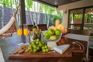 Nestled in the lush greenery of Coconut Grove, this modern 4-bedroom, 3.5-bathroom home blends style, comfort, and privacy. Surrounded by mature foliage, it feels like a private retreat yet remains close to the heart of the Grove. Inside, a sleek open-concept layout features high-end finishes and abundant natural light. The contemporary kitchen offers clean lines, ample storage, and premium appliances. Each spacious bedroom has its own en-suite bath, while the primary suite opens directly onto a serene private deck-ideal for morning coffee or evening relaxation. A charming backyard patio, shaded by canopy, invites effortless outdoor entertaining. Whether hosting guests or enjoying a quiet moment, this home offers the tranquility and elegance of true Coconut Grove living.