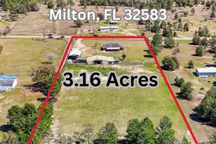 Gorgeous, Peaceful Country Living - Horse-Ready Retreat on 3+ Acres! Escape to tranquility with this beautifully and meticulously maintained 3-bedroom, 2-bathroom home, perfectly situated on over 3 acres of fully fenced, horse-ready land. Built in 2011, this exceptional property boasts a 5-stall barn with automatic waterers, a hay barn, a pole barn with RV hookups, and an additional storage shed-everything you need for your horses, livestock, and outdoor lifestyle. As you arrive, you're welcomed by a charming covered front porch, the ideal spot to sip your morning coffee while soaking in the peaceful surroundings. Step inside to an expansive great room centered around a stunning fireplace-perfect for cozy evenings. The well-appointed kitchen features granite countertops, gorgeous cabinetry with extra storage, and an oversized laundry room for added convenience. French doors open to your serene screened-in back porch, seamlessly extending your living space outdoors. The split floor plan provides privacy and functionality, while the tile floors throughout ensure low-maintenance living. Outside, a screened porch and additional patio offer the perfect setting for entertaining family and friends. With a fully fenced pasture for grazing, ample storage, and a full RV hookup, this property is designed for those who love country living without sacrificing convenience. Enjoy quick access to Highway 87 and Interstate 10, all while being just 25 minutes from the sugar-white sands of Navarre Beach. Don't miss this rare opportunity to own the best of both worlds-peaceful country living with modern amenities. Bring your horses, RV, and toys-this one won't last long!