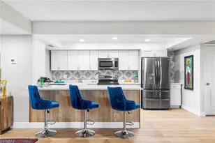 Nearly $100,000 spent to renovate this first-floor condominium near the community pool and hot tub. Gorgeous lake and golf course views! Goodbye galley kitchen. Hello stunning, open kitchen offering island with breakfast bar, quartz countertops, artfully designed backsplash, farm sink, soft-close drawers, pantry, white shaker cabinets and drawers, drop ceiling removed and custom lighting added, complete with a graphite-colored LG appliance package. Goodbye washer and dryer in outside closet. Hello in-residence, stacked laundry system. So many fantastic improvements. Warm, easy-to-maintain vinyl floors throughout main living areas and bedrooms. Primary bedroom with custom closet doors and lots of windows offering golf course and lake views, plus direct access to the glass-enclosed lanai. Primary bath has ship lapped walls, modern light fixtures, new storage cabinet and sink, mirrored medicine cabinet and stunning shower. Spacious guest bedroom has walk-in closet and a guest bath with shower/tub combo, and updated light fixtures, sink and faucet. Glass enclosed lanai with electric storm shutter for year-round enjoyment. Plus, an extra outdoor seating area in the rock garden. Large storage closet just outside the front door and another storage cubby around the corner. Reserved covered parking. Keyless entry pad on front door. Move-in ready! No stairs or elevators. Less than 10 minutes to downtown Naples and the beach. This is a must-see. Furniture is negotiable.