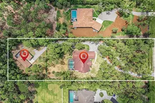 Welcome to a truly rare opportunity in the highly sought-after Oakes Estates, an area experiencing strong high-end growth and redevelopment. Situated on an expansive 2.5-acre parcel, this unique estate offers two single-family pool homes with no HOA fees and access to top-rated school districts-a combination that is increasingly hard to find. The main residence offers a flexible layout and serves as a true blank canvas, providing an exceptional opportunity to personalize and transform the space into your ultimate dream home. Architectural highlights include soaring ceilings exceeding 20 feet in select areas, a working fireplace, custom wood cabinetry, wood-cased windows, and quality Decora and KitchenAid appliances. Southern exposure fills the home with natural light, while the oversized garage, expansive lanai, pool, and dedicated pool bath make entertaining effortless. The second residence, offering over 1,300 square feet, is perfectly positioned at the rear of the property, providing excellent privacy and separation from the main home. Built in 2000 with solid CBS construction, this charming three-bedroom, two-bath home features an open kitchen, two-car garage, and a private plunge pool. Currently tenant-occupied, it presents an ideal opportunity for rental income, guest accommodations, or the flexibility to live in the second home while completing your dream estate. This exceptional property allows for multiple lifestyle and investment options-live in one home and rent the other, accommodate multi-generational living, or hold both as a strategic long-term asset. Enjoy the freedom of estate-style living while remaining just minutes from shopping, dining, and all that Naples has to offer. A rare opportunity to own two homes on one estate in Oakes Estates-properties like this seldom come available.