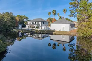 Welcome to this tranquil pool home, situated on a one-acre lot with serene lake views! Located in Hidden Creek with quick access to East Bay Blvd, this updated home offers a 2025 roof, 2 new AC units (2023 & 2025), a completely renovated kitchen, and a pool with a brand new liner! Upon entering the nearly 5,000-square-foot residence, you're welcomed by a grand staircase, porcelain tile plank flooring, and a spacious, light-filled living room featuring soaring ceilings and large windows overlooking the pool and pond. The beautifully updated kitchen showcases luxury appliances such as a Bosch dishwasher, Dacor fridge, an induction cooktop, cafe double ovens, granite countertops, an island with an extended breakfast bar, and dual sinks. A butler's pantry connects the kitchen to the formal dining area and laundry room (enabled with a laundry chute from upstairs!). The primary suite offers space for a sitting area and a bathroom complete with a large walk-in closet, a cedar sauna and double vanities. A versatile bonus space on the main level provides the perfect setup for a home office, gym, or playroom. Upstairs, you'll find four spacious bedrooms, two full bathrooms, and a substantially sized bonus room. Select bedrooms open to a large balcony overlooking the peaceful lake and woods. Outside, enjoy a covered porch, a sparkling pool (pump and sand filter replaced 2023), private fishing pier, and a pool house bathroom! The property has a detached three-car garage, set up with a circuit for electric car charging and extra attic storage. The back of the garage has the potential to be converted into space for boat or RV storage. Hidden Creek offers exceptional amenities, including a golf-course, a clubhouse, multiple pools, a fitness center, a boat ramp and pier, a soundside beach area, and a variety of children's programs. (See MLS docs for full list of amenities & home's upgrades) This is a rare opportunity to enjoy luxurious living in a serene setting!
