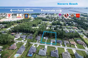 Welcome to this charming 3-bedroom, 2-bath home in Navarre 1st Addition, set on nearly an acre of land (.80) with plenty of space to enjoy. No HOA! Not only does this property boast a new AC installed in 2020, a fresh roof from 2022, and water heater from 2024, Hurricane Fabirc Shield for windows, but it also features a huge 2015 detached 2-car garage (30x28), with one insulated side and AC window units and two additional 10x20 sheds for ample storage. As you enter, you'll be greeted by smooth ceilings and a welcoming kitchen on your right, complete with tile flooring, a large island with an eat-in dining area, and sleek stainless-steel appliances perfect for cooking for family and friends. The kitchen's pass-through window into the dining room helps keep you connected during gatherings. And just off the foyer is the laundry room and the entry door to the 2 car garage. The spacious living area features cathedral ceilings, laminate flooring, and French doors that lead to a generously sized patio and a backyard perfect for outdoor entertaining. The primary bedroom offers carpet flooring, a tray ceiling, a ceiling fan, and an ensuite bathroom with a double vanity, a garden shower combo, and a walk-in closet. There are two additional bedrooms, each with carpet and ceiling fans, ensuring comfort for family members or guests. The property also comes equipped with hurricane shutters for added security, and an irrigation system to maintain a lush lawn. Ideally located near Navarre Beach and the fabulous Navarre Park, this home is close to local conveniences like the upcoming Chick-fil-A, Panera Bread, and the new traffic light at Ortega St., making access to Hurlburt Field a breeze. Shopping, schools, ERs, Drs offices and all the essentials are just moments away. Eglin is just to the East along with Fort Walton and Destin. Go West and you will find Gulf Breeze and Pensacola. Don't miss out on this home!
