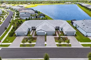 Welcome to 14608 Misty Pond Loop, a beautifully upgraded 2-bedroom, 2-bathroom villa with a versatile den and 1,442 square feet of stylish living space, nestled in the gated community of Talon Preserve on Palmer Ranch. Built in 2024, this home offers the peace of mind of newer construction while boasting tasteful upgrades and designer finishes that elevate it beyond the standard new-build experience. Inside, an open floor plan creates a seamless flow between the kitchen, dining, and living areas-ideal for both everyday living and entertaining. The chef's kitchen is a showpiece, featuring 42-inch white cabinetry, quartz countertops, a modern backsplash, built-in pantry, and a spacious breakfast bar. All appliances are 2024, including a gas stove for a premium cooking experience, and the kitchen design blends functionality with style. Throughout the villa, tile flooring, 8' interior doors, and 5" baseboards add to the sense of modern sophistication. Property has been rezoned to a non-flood zone and does not require flood insurance! The primary suite is a serene retreat with a walk-in closet fitted with upgraded custom California-style shelving and a spa-like ensuite bath featuring dual sinks, quartz countertops, and a walk-in shower. A secondary bedroom and full guest bath with a quartz vanity and shower/tub combo provide comfort for visitors, while the versatile den/study-currently used as a third bedroom-adds flexibility to the layout. After purchasing the home, the seller invested in thoughtful upgrades that set this villa apart. Seller replaced the standard fixtures with sleek black hardware on doors and hinges, and added custom modern light fixtures and ceiling fans throughout to elevate the style and ambiance. Additional pre-occupancy enhancements include cabinets in the laundry closet (with washer and dryer included), plus a utility sink and epoxy flooring in the 2-car garage. With PGT Windguard hurricane windows and doors providing strength and security, and the added rain gutters offering extra protection, these enhancements combine with the interior upgrades to deliver both practicality and designer appeal-making the home truly stand out. Beyond the home itself, Talon Preserve on Palmer Ranch offers one of the region's most impressive resort-style amenity centers, spanning 18,000 square feet. Residents enjoy a grand clubhouse with a community room, catering kitchen, social and outdoor lounges, a card and craft room, and a classic arcade. Wellness and recreation abound with a state-of-the-art fitness center, performance training room, group fitness studio, 8 pickleball courts, 2 tennis courts, 4 bocce courts, a playground, firepit lounge, dog park, resort-style pool with heated spa, splash pad, and even a full-service restaurant and bar & grill. Direct gated access to the Legacy Trail offers miles of scenic biking, walking, and running paths. All of this is just 10 minutes from Florida's world-renowned Suncoast beaches, as well as boutique shopping, fine dining, and the historic downtowns of Venice and Sarasota. With quick access to I-75 and the nearby Sarasota Memorial Hospital Venice campus, convenience meets luxury in one of the area's most exciting new communities. This villa is more than just a new build-it's a thoughtfully upgraded home designed for modern living in a resort-style setting.