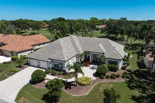 Under contract-accepting backup offers. Discover refined living in this expansive Calusa Lakes estate, where exceptional curb appeal meets lush, meticulously maintained landscaping & classic brick-paver driveway. Encompassing 3,460 square feet of thoughtfully designed living space, this home features soaring ceilings, an open-concept dining area, four spacious bedrooms & three baths. A versatile, bonus room with private French door entry offers endless possibilities such as a 2nd office or workout space, it could possibly be converted into a third garage bay. The chef-inspired kitchen, outfitted with stainless steel appliances & generous cabinetry, seamlessly flows into the expansive family room, ideal for relaxed living & entertaining. Step outside to your private lanai, a true sanctuary complete with a heated pool & ample space for gatherings under the Florida sun. The oversized primary suite is tucked away in its own private wing, featuring dual walk-in closets & a luxurious en-suite bath. Built for peace of mind & year-round comfort, the home includes hurricane protection throughout, including remote-controlled Kevlar shutters for the lanai. A whole-house Kohler generator powered by three above-ground propane tanks activates automatically during power outages and self-tests. No worries here with NEW ROOF in 2019, 2 new AIR CONDITIONING units in 2020, 2 new HOT WATER heaters in 2024 and new POOL CAGE in 2014! Additional features include two electrical panels, whole house surge protector & oversized garage with room for a golf cart. Situated on the 150-yard marker within the prestigious, golf community, this residence benefits from low HOA fees, no CDD fees, & no mandatory golf membership. Enjoy close proximity to the white sands of Nokomis Beach & the vibrant shops, restaurants, & cultural offerings of Venice Island, just 10 minutes away. Residents also enjoy the convenience of a private back entrance offering direct access to the new SMH & easy highway connections for seamless travel. This exceptional home offers the perfect blend of elegance, functionality, & location. Don't miss this rare opportunity to own a slice of paradise.