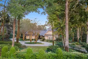 Nestled among beautiful gardens on 2.26 acres in the Country Club of Ocala, this stunning estate features a main residence and a charming guest house. Spanning 7005 sq ft, the main residence has 5 bedrooms, 5 full baths and 2 half baths, each thoughtfully placed for comfort and privacy. As you enter the foyer of this gracious estate home, you are led to the formal living room with gas fireplace and a stunning coffered ceiling. The adjacent formal dining room opens to a southern style veranda, offering views of the beautifully landscaped property. Throughout the main living areas, antique pine floors add warmth and character, while custom built-ins throughout the home, provide an abundance of storage. The heart of the home is a gourmet chef's kitchen, showcasing Brazilian Bahia granite countertops, custom wood cabinetry and a spacious center island with plenty of space to add additional seating. The breakfast room leads into a cozy family room, with vaulted wood beam ceilings and a wall of built-ins and is the perfect gathering space for friends and family. A private interior courtyard, accessed through the kitchen hallway, provides additional space for outdoor dining or relaxation. Each bedroom is designed with its own private wing and en-suite bath, ensuring privacy for all. The owner's wing includes a private study and a luxurious primary suite featuring double vanities, a separate tub and shower and built-in closets with a dressing area, connecting seamlessly to an exercise room and a serene private courtyard with a hot tub. A bonus room on the second floor is currently being used as a game room but could have many uses. Small mudroom leads to the climate controlled 3 car garage. The charming guest house is 3,096 sq ft and features kitchen with granite countertops with seating for barstools and dining area that opens out to family room/game room. In addition, guest home has 2 bedrooms and 2 and a half baths, along with a large exercise room with an infrared sauna, offering a perfect retreat for visitors or family. This estate is a true outdoor enthusiast's paradise, with golf course frontage on two sides with views of #15 and #16, including a tranquil water view. Step outside to your very own pickleball court and enjoy one of the fastest-growing sports in the country without ever leaving home. This sports court has the added bonus of being used for volleyball or basketball and is conveniently connected to an outdoor putting green. Dive into luxury with the infinity pool and spa, heated and equipped with a salt system, featuring a stunning water spout and fireball accent that create a captivating ambiance. A pergola adds a stylish touch to the outdoor space, perfect for al fresco dining. The expansive grounds are fully fenced, with a brand new motorized driveway gate providing both security and elegance. This smart home also features advanced technology for ease of living and convenience, and the home is equipped with a full house generator for peace of mind. Home has 2 wells, one dedicated for irrigation, a water treatment system and a reverse osmosis water filter in the kitchen, master suite, and pool house. Beautiful gardens surround the property, creating a tranquil atmosphere that enhances its sense of serenity and privacy, yet this peaceful retreat is just 15 minutes from Downtown Ocala and within 30 minutes of the World Equestrian Center and the Ocala airport, offering the perfect balance of seclusion and convenience.