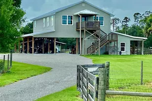 25 ACRES!! The perfect equestrian/livestock property that still has the unique 'Old Florida' charm. The 4BR/3.5BA 2020 custom home features a large kitchen with plenty of counter space and bar seating to host your family gatherings, and a large family room. From the vast 25 acres that is cross fenced in four different pastures all with improved grasses for your livestock and horses, to a 4 stall horse barn, a working set of cow pens that boasts a covered concrete slab to shade the squeeze chute area. In addition, you will find a riding arena, spacious pole barn, dog pens, and large shop with 2-50 amp plugs to meet your welding or heavy equipment needs. The exterior is hardy board concrete siding, metal roof, and has impact windows installed throughout. Opportunities are endless!