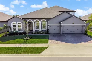BACK ON MARKET DUE TO BUYER'S FINANCING. Assumable VA Loan at 5.3% interest rate with Navy Federal. This is the one you have been waiting for! It's hard to find a new construction home that comes w/a pool-and yet here is a stunning almost new (M/I Homes built in 2023) w/a heated pool & jacuzzi that exudes elegance! This amazing home offers 5 full bedrooms plus a study and full in law set up too! Nestled in a quiet gated community in sought after Oviedo, arriving at the home you will notice the gorgeous curb appeal, brick paver drive and walkway, three car garage and covered front porch w/lovely columns. Entering you'll be greeted by 11'4" ceilings, vinyl plank flooring throughout, high end light fixtures & neutral decor. Just to the left of the foyer are french doors opening to a study/den/formal living room-use your imagination for this versatile space. To the right is a large formal dining room overlooking the great room space of the family room, kitchen and informal dinette. The kitchen is a chef's dream w/granite, 42" cabinets w/crown molding, GE profile stainless steel appliances, two ovens- a built-in oven and separate range, elegant backsplash, pendant lights and walk-in pantry too. The family room is large w/recessed lights and sliding doors that open to the covered paver lanai pool area. The owner's retreat is to the left of the home -and WOW! The bedroom space is huge, w/tray ceilings, recessed lights, ceiling fan, a door to the lanai and lots of windows allowing natural light to pour in. Further, you will delight in the owners on suite w/two large walk-in closets both with built ins and a large bath that will transport you at the end of a hard day to a calming spa of peaceful luxury with two separate vanities, a large step in shower with seamless shower door, and separate soaking tub. On the opposite side of the home are three more guest bedroom with two more full baths- one that is shared between two rooms and the other separate full bath has a door to the lanai serving as a pool bath too. All baths have quartz and high-end fixtures too. Need a completely separate get away space for in laws, guests or a teen/college retreat? This home has that too! Walking upstairs you will find a HUGE living space offering a mini kitchenette, pantry, large great room, bedroom, full bath and screened/covered outdoor deck too.This space is far from the other rooms and would be a perfect living space for someone who needs their owner private retreat. Like outdoor entertaining? Walk out to the covered and screened lanai offering a huge area to sit and entertain. The pool and spa are heated with a jandy heat pump, there's a perfect space to put your grill or add an outdoor kitchen that's already pre-plumbed, and the back of the enclosure offers privacy screen too. The beautiful paver area offers plenty of deck space to relax by the pool or dine under the large covered area too. The yard is almost a 1/4 acre & fully fenced for extra privacy too. Want more to love? There's a workspace/desk just off the kitchen area, large laundry area w/cabinets for storage and a sink for convenience, built ins in closets throughout, garage is wired for electric vehicle, and soffits are wired for holiday lights, rain gutters, attic storage access in garage, brand new epoxy floor in garage, rain shower heads and more. Close to restaurants, shops, medical plazas, minutes from highway 417 & zoned for excellent Seminole co schools-call for a private showing today!